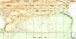 The Southern Pacific Gyre is part of the Earth’s system of rotating ocean currents, bounded by the Equator to the north, Australia to the west, the Antarctic Circumpolar Current to the south, and South America to the east.[1] The center of the South Pacific Gyre is the oceanic pole of inaccessibility, the site on Earth farthest from any continents and productive ocean regions and is regarded as Earth's largest oceanic desert.[2] The gyre, as with Earth's other four gyres, contains an area with elevated concentrations of pelagic plastics, chemical sludge, and other debris known as the South Pacific garbage patch.[3]