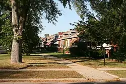 The South Park Manor Historic District is a residential historic district in the Greater Grand Crossing neighborhood of Chicago, Illinois. The district includes 263 Chicago bungalows built between 1915 and 1927. At the time, single-family homeownership was becoming broadly accessible to Chicagoans, and the bungalow was a popular choice for dense urban housing. The bungalows in the district were designed by several developers, but the district has a consistent appearance nonetheless. The use of a single home type throughout provided uniformity to the neighborhood, while stylistic variations such as the placement of dormers and porches gave each house its own character. The developers also gave their homes spacious lawns and private backyards to preserve green space in an urban setting.[2]