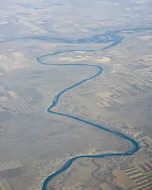 A 2009 report,[4] produced by WWF-Canada which analysed the river flow on 10 major Canadian rivers reported that the South Saskatchewan River was the most at risk. Climate change, agricultural and urban infrastructure water use, and dams producing hydroelectricity, have all combined to reduce the flow of the South Saskatchewan River by 70 percent. Developers and governments have been cautioned to protect and restore the river with sustainable projects and limit water diversion.[5] Dickson Dam regulates water supply downstream on the Red Deer River; the Bassano Dam and 11 other dams divert water on the Bow River and in the Bow River basin; and the Oldman River Dam and Waterton-St. Mary Headworks System manage water flow downstream of the Oldman River.[6] The proposed Meridian dam 30 kilometres (19 mi) west of Leader and 95 kilometres (59 mi) north east of Medicine Hat was cancelled due to project costs outweighing the irrigation benefits.[7][8]