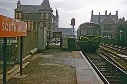 Nationalisation in 1948 saw the station become part of British Railways North Eastern Region, but over the next few years services began to decline - those to Whitburn Colliery ended in November 1953,[2] whilst the direct Sunderland trains fell victim to the Beeching Axe in May 1965 (passengers thereafter having to change at Pelaw). The Newcastle line was also converted to diesel multiple unit operation in 1963, with BR stating that it was cheaper to remove the third rail than renew the electrical equipment on the route.[1] Though it survived the Beeching cuts, by the 1970s the station (and route) had become increasingly run down and so it was a logical choice to be included in the planned Tyne & Wear Metro network.[3]