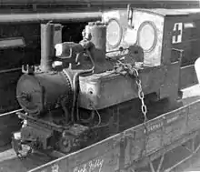 The Pug twins shared a water tank which was arranged between their engine frames and had chimneys with balloon-type spark arresters. The wheel arrangement of the individual engines is not known, but the boiler pressure was set at 176 pounds per square inch (1,213 kilopascals), the total heating surface of the boiler was 154 square feet (14.3 square metres), the firegrate area was 3.65 square feet (0.339 square metres) and the tractive effort at 50% of boiler pressure was 2,150 pounds-force (9.6 kilonewtons). The boiler pitch was 3 feet 7 516 inches (1,100 millimetres) and the engine weight in working order was 7 long tons 0 hundredweight 3 quarters (7,150 kilograms).[14]