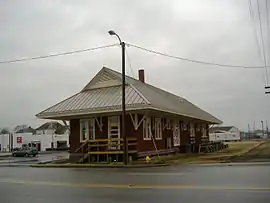 Three separate railroads once used the facilities here. These railroads included the Jeffersonville Railroad and the Ohio and Mississippi Line. These facilities included a roundhouse repair shop, the Adams Express Company, and access to interurbans. A passenger depot located next to the freighthouse has been demolished. The Freighthouse has display detailing the history of railroads in Jackson County.[2][3]