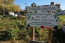 Kossuth Street Garden covers the entire lot 641 E. Kossuth Street, located in the Southern Orchards neighborhood just east of German Village. Founder and director Michael Doody has been serving the community since 2007.[31]