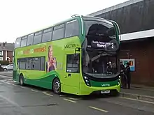 Southern Vectis[1] is a bus operator on the Isle of Wight. The company was founded in 1921 as "Dodson and Campbell" and became the "Vectis Bus Company" in 1923. The company was purchased by the Southern Railway before being nationalised in 1969. In 1987, the company was re-privatised. Southern Vectis was accused of unfair trade practices and was investigated by the British Office of Fair Trading. In July 2005, it became a subsidiary of Go-Ahead Group.
