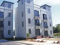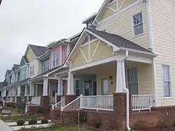 In 1996 the Greensboro City Council approved a bond package that included funding for the redevelopment of the neighborhood and an intensive community planning process followed. This resulted in the Southside Plan—a blueprint that follows the principles of "new urbanism." Existing historic houses are being renovated for owner-occupied residences. New housing features structures that are closely spaced and oriented toward the street with wide front porches. Sidewalks, period street lights, and other amenities add to the turn-of-the century ambiance. New construction also includes townhouses and commercial buildings surrounding a central park-like square.[2] In December 2007, construction on the first two buildings of an eight building apartment complex called CityView Apartments was complete.