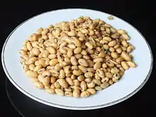 Soy nuts are soybeans soaked in water, drained, and then baked or roasted.[1] They can be used in place of nuts and are high in protein and dietary fiber.[2] Soy nuts along with various soy products are common in vegan and plant-based diets all over the world as soy is a complete protein and is inexpensive to purchase.[3]