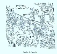 On the indigenous side, the allies of Cortés, particularly the Tlaxcalans, wrote extensively about their services to the Spanish Crown in the conquest, arguing for special privileges for themselves. The most important of these are the pictorial Lienzo de Tlaxcala and the Historia de Tlaxcala by Diego Muñoz Camargo. Less successfully, the Nahua allies from Huexotzinco (or Huejotzinco) near Tlaxcala argued that their contributions had been overlooked by the Spanish. In a letter in Nahuatl to the Spanish Crown, the indigenous lords of Huexotzinco lay out their case in for their valorous service. The letter has been published in Nahuatl and English translation by James Lockhart in We People Here: Nahuatl Accounts of the Conquest of Mexico in 1991.[34] Texcoco patriot and member of a noble family there, Fernando Alva Ixtlilxochitl, likewise petitioned the Spanish Crown, in Spanish, saying that Texcoco had not received sufficient rewards for their support of the conquistadors, particularly after the Spanish were forced out of Tenochtitlan.[35]