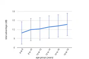 People with spatial hearing loss have difficulty processing speech that arrives from one direction while simultaneously filtering out 'noise' arriving from other directions. Research has shown spatial hearing loss to be a leading cause of central auditory processing disorder (CAPD) in children. Children with spatial hearing loss commonly present with difficulties understanding speech in the classroom.[1] Spatial hearing loss is found in most people over 70 years of age, and can sometimes be independent of other types of age related hearing loss.[2] As with presbycusis, spatial hearing loss varies with age. Through childhood and into adulthood it can be viewed as spatial hearing gain (with it becoming easier to hear speech in noise), and then with middle age and beyond the spatial hearing loss begins (with it becoming harder again to hear speech in noise).