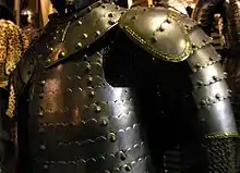 Spaulders are pieces of armour in a harness of plate armour. Typically, they are a single plate of steel or iron covering the shoulder with bands (lames) joined by straps of leather or rivets. By the 1450s, however, they were often attached to the upper cannon or rerebrace, a feature that continued into the 16th century.[1]