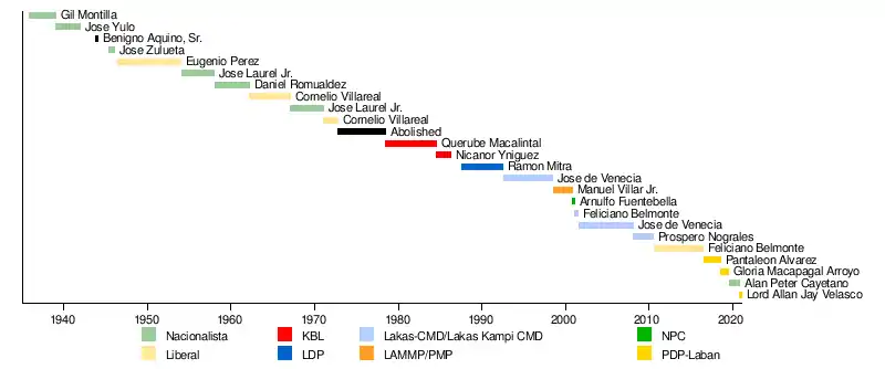 Feliciano Belmonte Jr. (Liberal), served 2001; 2010–2016