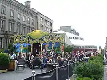 A spiegeltent (Dutch for "mirror tent", from spiegel+tent) is a large travelling tent, constructed from wood and canvas and decorated with mirrors and stained glass, intended as an entertainment venue.[1][2][3][4] Originally built in Belgium during the late 19th and early 20th centuries, only a handful of these spiegeltents remain in existence today, and these survivors continue to travel around Europe and beyond, often as a feature attraction at various international arts festivals. Two tents used by Teatro ZinZanni have been in (more or less) fixed locations in Seattle and San Francisco for several years.[5] The Melba Spiegeltent spent the better part of a century touring Europe, but is now permanently located in Melbourne, Australia.[6] The Famous Spiegeltent, built in 1920, was first used in the Adelaide Fringe in 2000 and is now owned by an Australian jazz piano player David Bates.