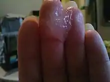 Spinnbarkeit (English: spinnability), also known as fibrosity, is a biomedical rheology term which refers to the stringy or stretchy property found to varying degrees in mucus, saliva, albumen and similar viscoelastic fluids. The term is used especially with reference to cervical mucus at the time just prior to or during ovulation. [1]