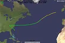 SNOX III was assembled shortly with a new balloon envelope and the same payload and ballast system from SNOX II. Launched in January 2008, it was the first official attempt to cross the Atlantic Ocean. The onboard GPS failed shortly after launch, eliminating the ability for the balloon to report its position, and also preventing the ballast system from detecting changes in altitude. Crude radio direction finding attempts by volunteers did indicate the balloon followed its predicted trajectory as far as the shore of the Atlantic Ocean in Virginia.