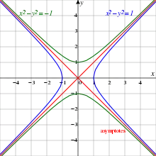 is a hyperbola for every nonzero a in R. The hyperbola consists of a right and left branch passing through (a, 0) and (−a, 0). The case a = 1 is called the unit hyperbola. The conjugate hyperbola is given by