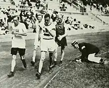 A track-side judge monitoring technique at the 1912 Summer Olympics in Stockholm, Sweden.