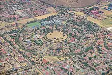 Springs was divided during the Apartheid era into the middle- and upper-income white suburbs around the city centre, the Indian area of Bakerton east of the CBD, while black people were relocated to KwaThema,[3] southwest of the CBD.