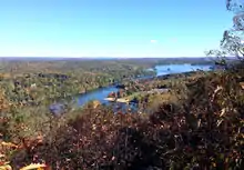 Squantz Pond State Park is a public recreation area located 10 miles (16 km) north of Danbury in the town of New Fairfield, Connecticut.[3] The state park encompasses 172 acres (70 ha) on the southwestern shore of 270-acre (110 ha) Squantz Pond,[4] offering opportunities for boating, swimming, fishing, and hiking. The park is bordered on the west by Pootatuck State Forest and is managed by the Connecticut Department of Energy and Environmental Protection.