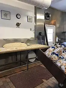 St-Viateur Bagel was established on May 21, 1957 by Myer Lewkowicz, a Holocaust survivor who moved to Canada in 1953.[1] Lewkowicz spoke of his experience in the Holocaust influencing the opening the shop by stating "At Buchenwald, all I dreamt of was a piece of bread".[1] He also learned the trade as an employee of Montreal Bagel Bakery, another bagel shop owned by Hyman Seligman.[2] Named after the street it is located on, St-Viateur Street, and one of the longest-running bagel shops in Montreal.[3] In 1985 the bagel shop suffered an extensive fire, yet the woodstove remained entirely intact.[4]