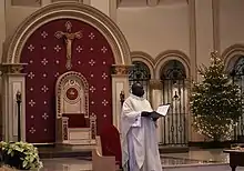 In a spirit of ecumenism, Bishop Dingman offered the use of St. Ambrose Cathedral for the episcopal consecration of the Rt. Rev. Walter Righter as the bishop of the Episcopal Diocese of Iowa.[14] The event was held on January 12, 1979. The liturgy was attended by Presiding Bishop John E. Hines and 10 other bishops of the Episcopal Church, representatives from the Lutheran and Presbyterian Churches, the Des Moines Area Council of Churches, and a Jewish Rabbi.[15]