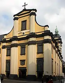 The church, dedicated to St. Andrew, was constructed between 1622 and 1629 in the South German baroque style. It was originally built for the Jesuits, who arrived in Düsseldorf in 1619, and served as the "court church" for the Counts palatine of Neuburg (House of Palatinate-Neuburg) from 1708.[3] After the dissolution of the Jesuit order in August 1773, it served as a parish church until 2005, when it became the monastery church of the Dominican Order. The building itself is now owned by the land of North Rhine Westphalia.[3]
