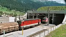 St. Anton am Arlberg is a railway station on the Arlberg railway between Innsbruck and Bludenz in Tyrol, Austria. It is located directly between the 10.648 km (6.616 mi) long Arlbergtunnel and the Wolfsgrubentunnel.
