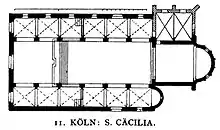 St. Cecilia's Church (Cäcilienkirche, Colognian pronunciation: [tsɪnˈtsila]) is one of the twelve Romanesque churches in Cologne’s old city, maintained by the Foundation of Romanesque Churches in Cologne. The present building, little changed since its inception, dates from 1130-60.[1] Since 1956, the church has been the home of the Schnütgen Museum for medieval art.[2]