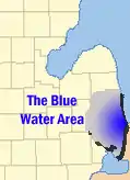 According to the U.S. Census Bureau, the county has a total area of 837 square miles (2,170 km2), of which 721 square miles (1,870 km2) is land and 115 square miles (300 km2) (14%) is water.[9] St. Clair County is one of five counties that form the peninsula, known as the Thumb, that projects into Lake Huron. St. Clair County is closely connected in terms of economy with its neighbors, Metropolitan Detroit and Sanilac County in Michigan, and Lambton County across the river in Ontario, Canada. Saint Clair County is the principal county in The Blue Water Area, a sub-region of the Thumb.