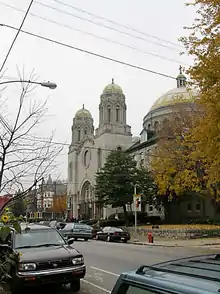 St. Francis de Sales Roman Catholic Church, founded in 1890, is a Catholic church at 4625 Springfield Avenue in Philadelphia, Pennsylvania, part of the Roman Catholic Archdiocese of Philadelphia. Its cornerstone laid in 1907,[1] the Guastavino tiled dome of the de Sales parish has been an icon in its neighborhood. The de Sales parish was designed by Philadelphia architect Henry D. Dagit,[2] built in the Byzantine Revival style and incorporates a Guastavino tile dome modeled on that of Istanbul's Hagia Sophia and elements of the Arts and Crafts movement which was at its peak when the church was built.[3]