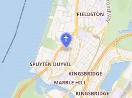 St. Gabriel's Roman Catholic Church is a parish located in the Riverdale section of The Bronx, New York. The parish was created in 1939 by Francis Spellman, then the Archbishop of New York, as the successor to the St. Gabriel's Church on East 37th Street in Manhattan, which was razed in 1937 to accommodate the construction of the Queens-Midtown tunnel.[1] The pews, altars and statues of the original church were relocated to the new structure, and many of the church's Irish-American congregants also moved to the Bronx to be near their parish.[2] The Right Reverend Francis W. Walsh, pastor of the Church of the Assumption in Peekskill, New York, and president of the College of New Rochelle, was named pastor [3] – a post he held until his retirement in 1969.