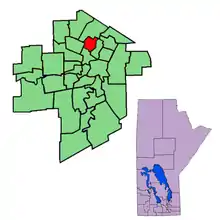 St. Johns is a provincial electoral division in the Canadian province of Manitoba. It was created by redistribution in 1957, and has formally existed since 1958. It is located in the north-end of Winnipeg. The constituency is bordered by Kildonan to the north and west, Burrows to the west, Elmwood to the east, and Point Douglas to the south.