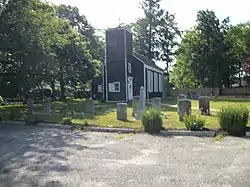 St. Johns Episcopal Church and Cemetery is a historic Episcopal church and cemetery on Montauk Highway on the northeast side, about 300' northwest of the junction with Locust Avenue, Town of Islip in Oakdale, Suffolk County, New York. The church is a small, rectangular one story building with a gable roof, wood shingle siding, and a simple painted wood exterior trim. It features a three-story, square, engaged tower with a shallow pyramidal roof. It was enlarged and remodeled about 1843 and restored in 1962; the stained glass window was added in 1873. The cemetery contains about 100 graves with burials dating from the late 18th century to early 20th century.[2]