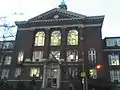 With the growth of the city, the school building campaign continued at a rapid pace. Between 1840 and 1860, more than twenty new schools were built by the Board, while several others occupied rented space.[26] Among these new schools was the first high school in St. Louis, which opened inside Benton School in February 1853.[27] Approximately 70 students enrolled in the school, and its first principal was Jeremiah D. Low.[27] Courses offered included higher arithmetic, grammar and composition, basic and advanced algebra, geometry, trigonometry, surveying, navigation, and the Latin and German languages.[27] The high school proved very popular among all social classes, and it encouraged attendance at lower level schools.[28] After two years of construction, the first high school building, known as Central High School, opened on Olive Street in July 1855.[29]