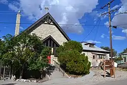 St. Mark's Episcopal Church, also known as St. Marks P.E. Church, is a historic church located at 210 University Ave. in Tonopah, Nevada, United States.[2] The church was built from 1906 to 1907 by stonemason E.E. Burdick. Burdick's work on the church has been called "some of the finest craftsmanship to be found in Tonopah". Architect G.B. Lyons designed the church in the Gothic Revival style; his design features Gothic arches at the windows and front entrance and gables topped with crosses on the roof and the entrance.[3]
