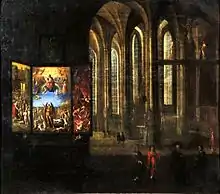 In 1820, during Bertling's pastorate, long forgotten chests and cabinets in the sacristy were opened and the first medieval garments and liturgical decorations were rediscovered.[4] In the 1830s more historic garments were found.[4] At that time the congregation did not grasp the richness and rarity of these findings.[10] So when Chaplain Franz Johann Joseph Bock, art historian and curator of the then Cologne Archdiocesan Museum, reviewed the discoveries he acquired a number of the best pieces from the congregation.[10] Bock showed them in an exhibition in 1853.[10] After his death some Danzig pieces from his personal collection were sold to London's Victoria and Albert Museum.[10] These and also later sales to private collectors included cloths and vestments made of fabrics from ancient Mesopotamia and ancient Egypt, obtained during the Crusades; as well as renaissance wares from Venice, Florence and Lucca (more than 1000 items altogether).[11]