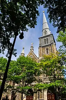 The Church of St. Mary's, New Haven, Connecticut, United States, was the first Catholic Church in New Haven, and the second oldest Roman Catholic parish in Connecticut. The parish was established in 1832 and is located near Yale University. It is part of the Roman Catholic Archdiocese of Hartford. In 1882, Father Michael J. McGivney, the church's assistant pastor, founded the Knights of Columbus at the parish.[1] McGivney, who remains are interred within the church, was beatified by Pope Francis in 2020. Since 1886, the St. Mary's parish has been run by friars of the Dominican Order.
