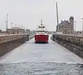 The first modern lock was completed in May 1855 by Erastus Corning's St. Mary's Falls Ship Canal Company, and was known as the "American Lock". Today, there are four parallel locks on the American side of the river, although only two are in regular use. The Soo Locks became part of the Great Lakes Waterway system in 1959.