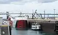 The tour boat Hiawatha and the laker Cason J. Callaway share the Poe Lock