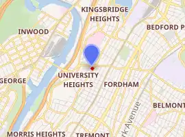 The Church of St. Nicholas of Tolentine is a Roman Catholic parish church under the authority of the Roman Catholic Archdiocese of New York, located at Fordham Road at University Avenue, in the Bronx borough of New York City, in the U.S. state of New York. The substantial stone twin-towered is deemed "The Cathedral of the Bronx."[3]