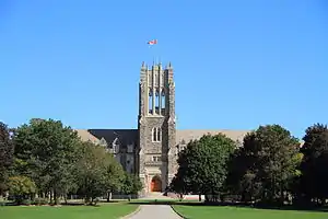 The 25-acre riverside site on which the Seminary stands was donated by Sir Philip Pocock, from a prominent London Catholic family. The Seminary is constructed of Credit Valley stone, and is designed in the Collegiate Gothic style. The cornerstone of the present building was laid by Bishop Fallon on May 31, 1925, and the official opening of the St. Peter's Seminary building was celebrated on September 29, 1926.[4] The main entrance rotunda features a marble statue of St. Michael the archangel, carved in Rome and presented from Bishop Fallon upon the Seminary’s opening.