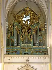The pipe organ was built in 1744 Johann Hencke, originally for the Dorotheerkirche in Vienna. It was moved to Baden in 1787. The organ has 28 stops, two manuals and pedal.[3] It was restored in 1987 by Gerhard Hradetzky from Oberbergen, re-using keys which Mozart and probably also Beethoven played.[2]