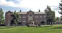 The current campus is one building in three parts. The science wing, which also includes the music room, chapel, and multipurpose room, is on the south side. A glass hallway separates it from the main building, which contains the majority of the classrooms and offices. The athletic wing, including the Joe Venturi gymnasium, locker rooms, weight room, and a few classrooms, is on the north side. To the east of the school are the football field, (doubling as a soccer pitch), press box, and baseball diamond. The softball diamond is to the south of the school. Students must remain on campus throughout the school day.