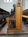 The benches were designed by František Bílek and made by František Kotyza. Each bench has its own animal motif. The organ is placed in the western part of the church on the organ loft.