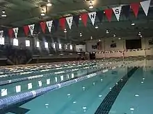 Since its move away from downtown, St. Xavier has expanded its facilities dramatically. In 1969, the school added a natatorium with a $500,000 Olympic-size swimming pool (equivalent to $2.73 million in 2019).[22][54] Keating Natatorium hosted the AAU Indoor National Swimming Championships in 1970 and 1975.[55][56] St. Xavier's worship space was replaced by Xavier Hall, a multipurpose facility, in 1986. In 1998, a $12.6 million expansion project moved science classes from the basement into a new, three-story wing and added the Holy Companions Chapel and a dedicated intramural gym.[57] During the 2003–04 school year, St. Xavier renovated the football stadium around Ballaban Field, which was built in the late 1960s.[31] Along with the stadium, the school opened a 500-seat[58] theater space, as well as a black box theater, art studios, and renovated music rooms. A new track field replaced the track that once surrounded Ballaban Field. St. Xavier also converted the former Girls' Town of America[59] location across the street into its "South Campus", which includes new baseball and soccer fields.[60] The school added a makerspace in the fall of 2017.[61]
