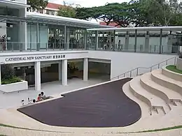 A project to extend the building was initiated in 2003. An archaeological excavation was conducted on its grounds in 2004 by the National University of Singapore before building commenced.[11] The extension, called the Cathedral New Sanctuary, was completed in November 2005. It was largely built underground to comply with conservation guidelines for a gazetted national monument, and features a new worship hall within two underground levels of new floor space.[6]