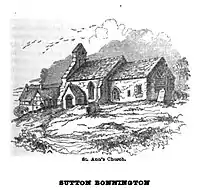 Sutton Bonington has two medieval churches, a result of the merging of the two original villages (Sutton and Bonington); they are St. Michael's Church (Bonington's church, located on Main Street) and the smaller St. Anne's Church (Sutton's church).[1]