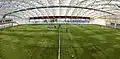 After the project was finally approved in 2008,[9] SGP was designed by Red Box Design Group, who also designed the Sunderland Aquatic Centre, Sunderland Football Club's Academy of Light and Durham County Cricket Club's Riverside Ground. The centre has 12 world-class training pitches, with both grass and artificial surfaces, one of which is an exact replica of the surface used at Wembley Stadium, and a full-sized indoor pitch. It also has state-of-the-art hydrotherapy suites, biomechanics and training gyms, video analysis amenities, educational and coaching suites and medical and sport science facilities.[10] It was built by Bowmer + Kirkland and completed in 2012.[11]