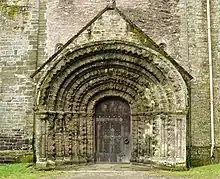 Some of the original Norman features remain, including the large arched western doorway which is particularly ornate and is carved from elvan quarried at Landrake.[3]