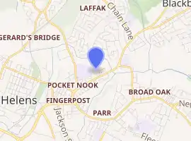 A football ground known as the Primrose Ground was constructed for the St Helens Town Football Club in 1901.[1] It was located on the east side of the Star Inn Race Ground and on the north side of Park Road and south of the St Helens Canal and the London and North Eastern Railway St. Helens branch.[2]
