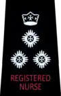 | Meaning | Registered Nurses with or without further rank insignia, as below. | Regional Officers with or without further rank insignia, as below. | Enrolled Nurses with or without further rank insignia, as below. | Paramedics with or without further rank insignia, as below. | Medical practitioners with or without further rank insignia, as below. |