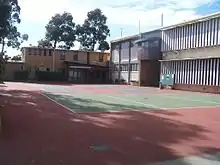 The first Principal was William J Hogan, followed by Francis A Kelly in 1904 and Matthew A Geoghegan in 1908.[7] The first football team, featuring a large white star on its guernsey, was formed around 1906 and began a long tradition of involvement in a variety of sports. A year earlier a wooden handball court had been built, a first for any school in Melbourne and in 1913 this was replaced by a brick three wall court, said to be the best in Australia at the time.[8] Over the next five decades the school hosted State and Interstate handball championships at various times.[9] The court continued to be used by the Victorian Handball Association up until at least 2010 but in the second half of the century the popularity of handball was surpassed by team sports such as Australian Football.
